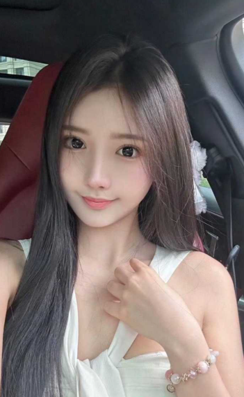 长发清纯美女坐在豪车副驾,白裙低胸露香肩,手指轻拉衣领露出深沟,眼神勾魂微笑甜美,胸前饱满若隐若现,腿部曲线诱人勾起无限遐想,简直想直接上手揉捏。